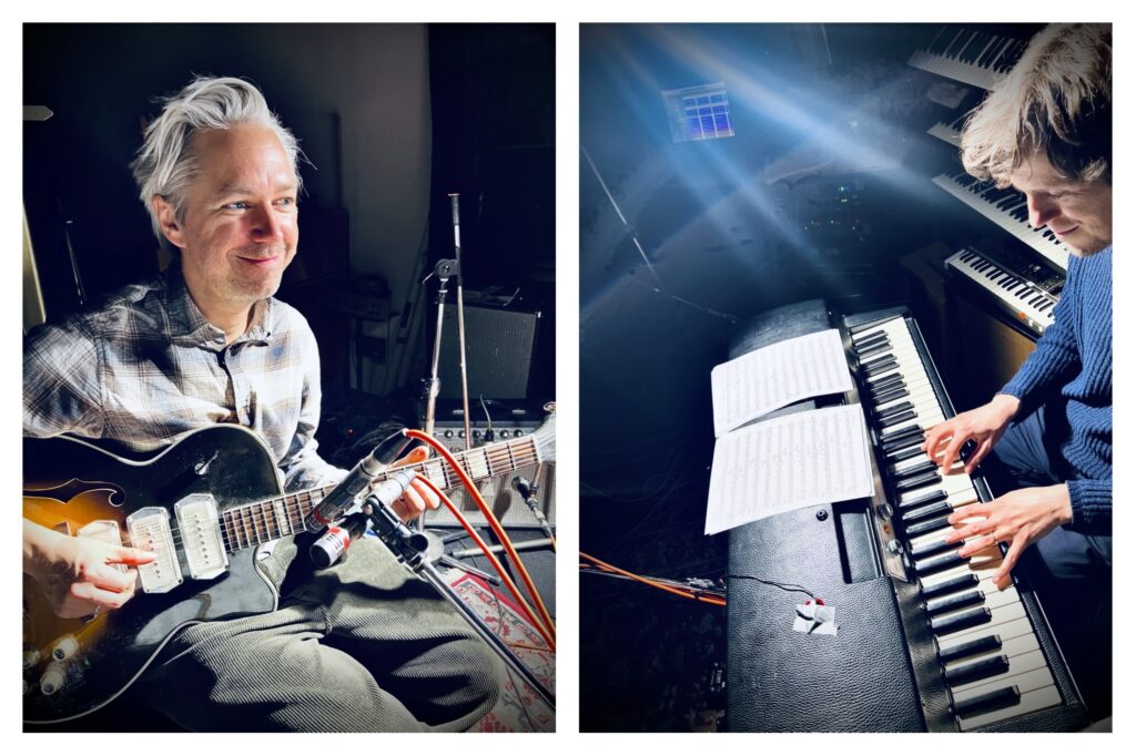Gitarrist Tobias Hoffmann und Pianist Benjamin Schaefer musizieren seit über zwanzig Jahren miteinander, begannen ursprünglich tatsächlich einmal als Duo, um dann für viele Jahre ihre gemeinsame Band “Expressway Sketches” voranzutreiben. Nun sind sie endlich wieder im Zweiergespann zu hören und dies in der ungewöhnlichen Kombination von E-Gitarre und Wurlitzer Electric Piano. Im brandneuen Programm finden sich neben Kompositionen von Tobias Hoffmann auch ausgewählte Lieblings-Standards der beiden Musiker. Mysteriöse Blues, Soul & Surf Sounds in kammermusikalischer Jazzbesetzung.
